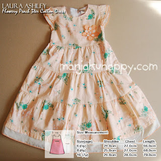 LAURA ASHLEY Peach Flowery Green Ribbon Cotton Dress
